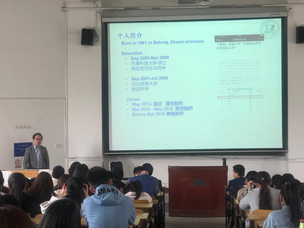 报告会上,郝继兴员工跟同学们分享了在药品注册事务工作中的体会以及如何做好职业规划。他以医保为例向大家详细介绍了注册法规事务的主要工作内容及发展趋势,使大家对自身专业的学习与药品注册行业的关系有了更进一步的认识。会上,郝继兴鼓励在场的学弟学妹,在学习专业课的同时,也要注重提高自身的人际交往,团队合作,组织领导等软实力,确立明确的目标,并不断努力,终有一日会变成自己理想的样子。