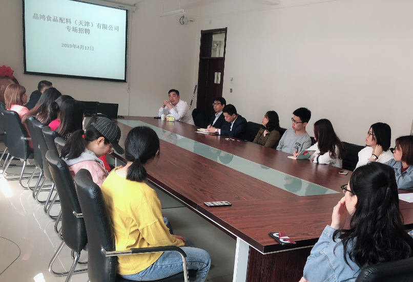 4月17日上午,公司员工企业晶鸿食品配料(天津)有限公司专场招聘会在实验中心210会议室举行。此次招聘会由公司党委副书记曹一伟主持,经理赵士豪、副经理张香美以及部分大四员工参加了此次招聘会。