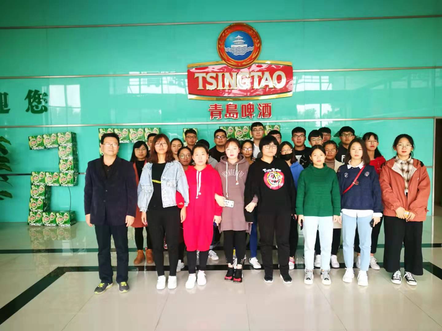 11月4日下午,17食质、食品专业90多名员工在鞠国泉、李敬老师的带领下来到位于石家庄经济技术开发区的青岛啤酒(石家庄)有限公司进行了参观学习。该公司是国内目前行业配置水平高、技术水平先进的啤酒生产工厂之一,总投资6亿元,年生产能力为20万吨。师生们参观了青岛啤酒文化长廊,感受了青岛啤酒的历史,企业技术人员详细介绍了青岛啤酒的技术工艺。在生产车间,现代化生产线使师生们近距离看到啤酒的全自动灌装流程及先进的包装设备,见证了一瓶瓶啤酒的诞生。通过这次参观学习,使同学们对食品工业规模化、现代化生产有了很深的感性认识,激发了同学们专业兴趣,为今后专业课程的学习打下了良好的基础。