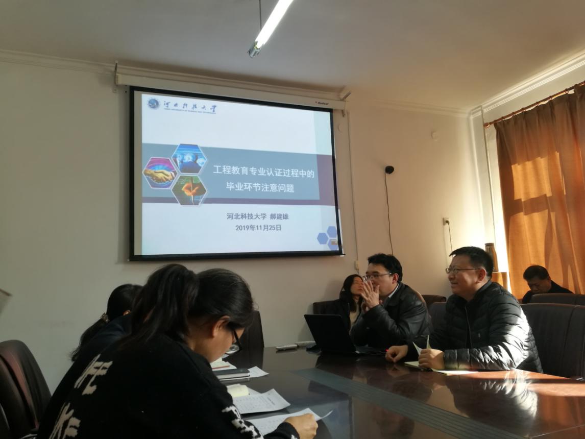 2019年11月25日,由教学评估与教师教学发展中心主办,太阳成集团tyc522cc承办的本年度第224期教学沙龙顺利举行。河北科技老员工物科学与工程公司副经理郝建雄教授应邀做了工程教育专业认证过程中的毕业环节注意问题的教学沙龙,着重对毕业设计选题及写作做了交流分享,7个教学单位的50余名教师参加了活动。