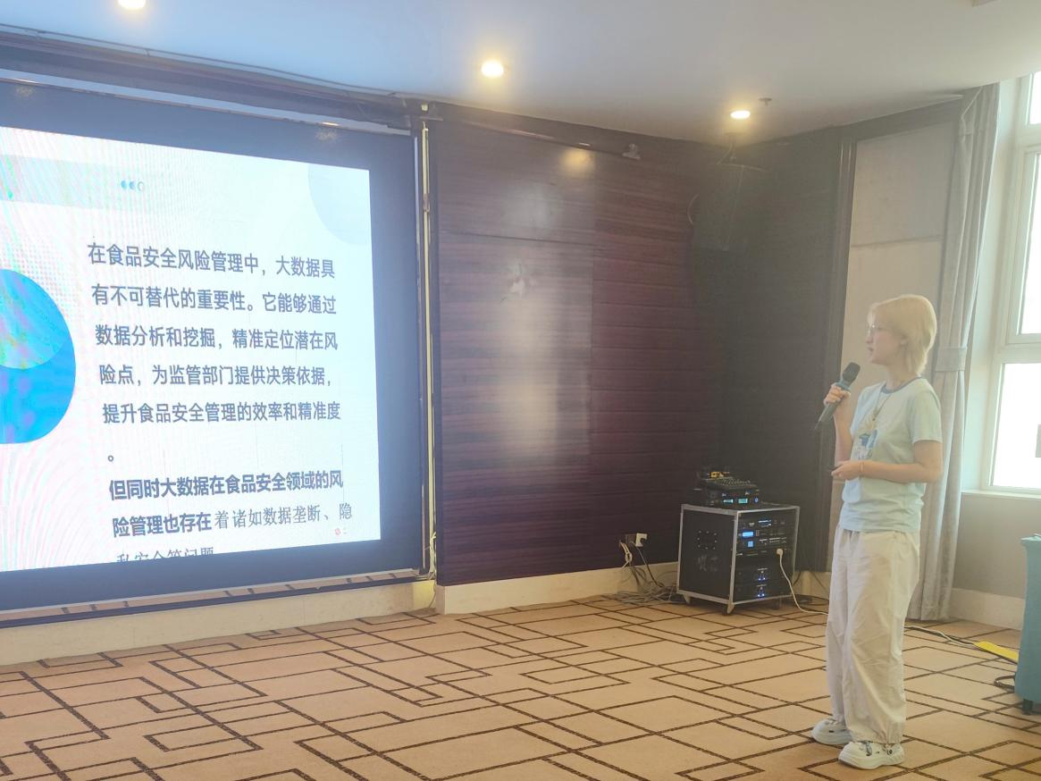 本届研究生论坛为食品领域青年学者提供学术展示窗口,吸引近30名在读研究生汇报研究成果,内容覆盖食品科学基础研究、工艺创新、检测技术、食品安全等多个细分方向,充分展现青年科研力量的专业基础与创新思维。论坛设置专家点评环节,评审团从实验设计、数据解读、应用价值等维度对报告进行针对性指导,为青年人才成长提供专业支持。公司2024级食品质量与安全管理研究生王思雨在研究生分论坛就大数据视域下的食品安全风险管理研究方向做了报告。