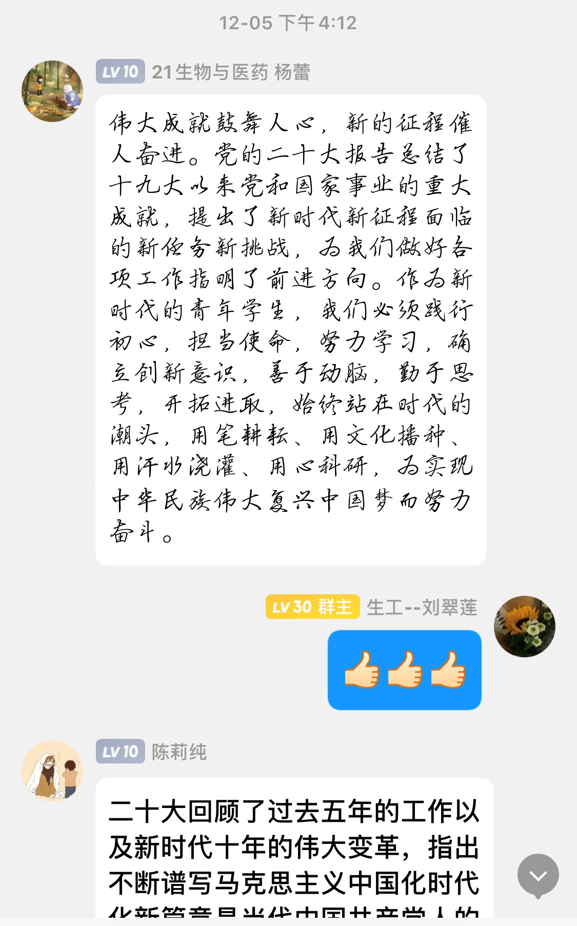 2022年12月5日太阳成集团tyc522cc员工第一党支部召开二十大报告线上学习研讨会,会议由公司员工第一党支部书记刘翠莲主持。会上刘翠莲老师与党员同志共同学习解读二十大报告要点,随后各位党员谈学习心得、谈思想认识,针对“贯彻二十大精神,青年党员应该怎么做”展开讨论,进一步学深悟透党的二十大精神。